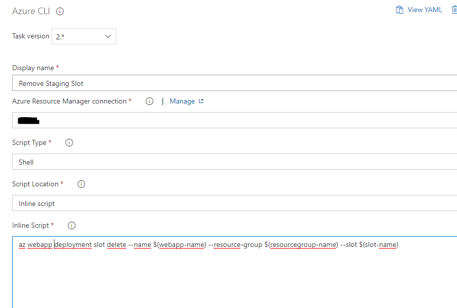 az webapp deployment slot delete --name $(webapp-name) --resource-group $(resourcegroup-name) --slot $(slot-name)