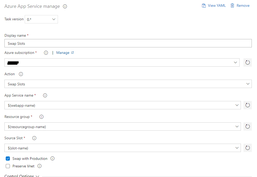 Voilà l’opération attendue, il s’agit de la tâche Azure App Service Management fournie également par Azure DevOPS par défaut qui permet de réaliser l’opération :