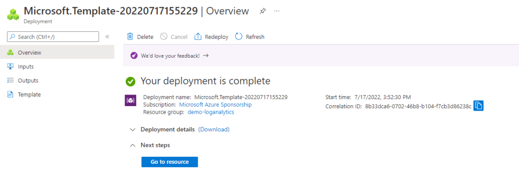 Log Analytics workspace collecte les métriques et logs applicatifs et vous permet de réaliser des requêtes pour pouvoir les exploiter facilement.